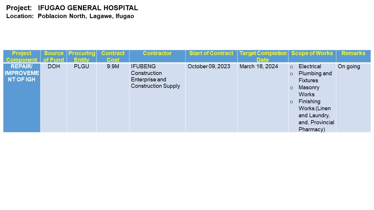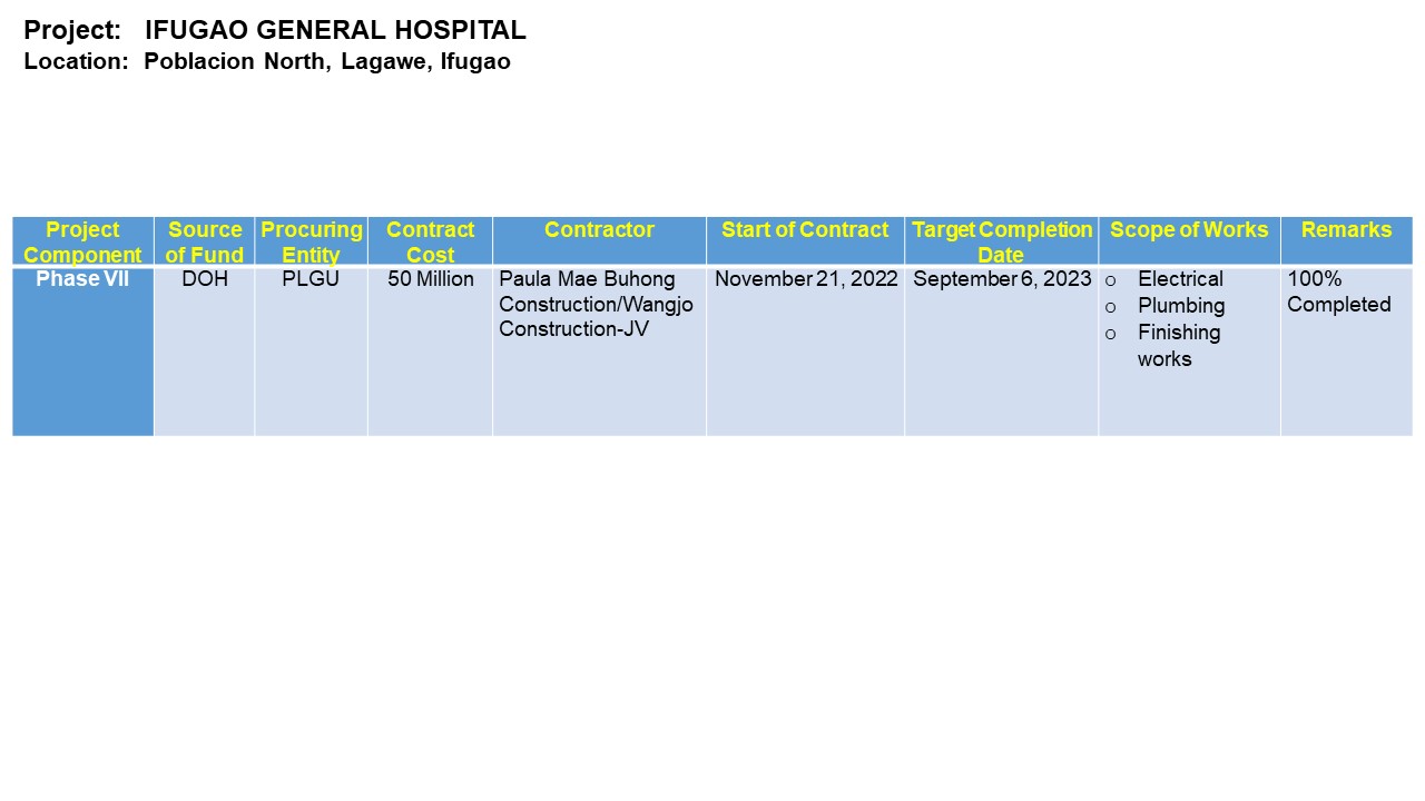 The newly constructed Ifugao General Hospital is Located at Lumingay Street, Poblacion North, Lagawe, Ifugao.