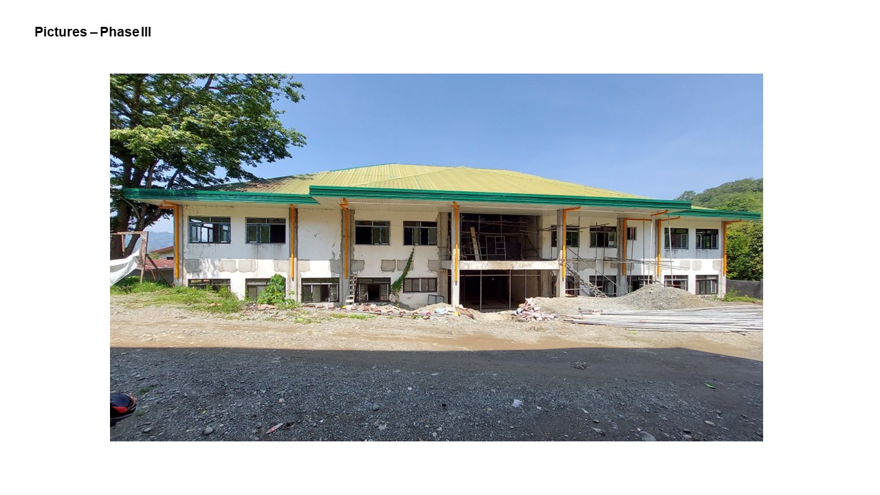 The Main Building is a two-storey with basement structure designed for a 100-bed capacity hospital which will initially operate as a 50-bed capacity.